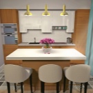 La hauteur du niveau inférieur de la cuisine est généralement de 85 à 90 cm, la table de la cuisine de 72 à 76 cm, ce qui signifie que vous aurez besoin d’un fantasme pour amarrer les objets à l’îlot ou utiliser des chaises semi-bar.