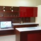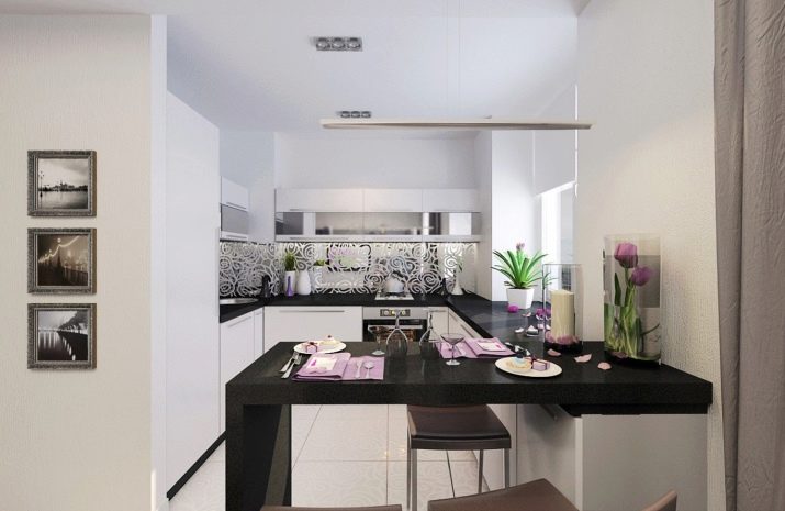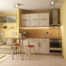 La couleur de la zone de cuisson revêt une grande importance. Dans le cas d'un accent, il peut être brillant, tout en transférant les préférences vers une zone de loisirs, imiter la couleur des murs ou conserver une gamme de meubles dans le salon.
