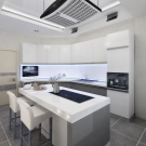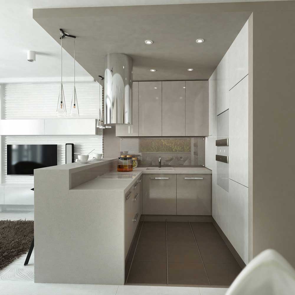 Pour la cuisine du salon 15 m² Il est préférable de limiter les «îles» à une zone de stockage ou à une surface de travail pour préparer des aliments.Des responsabilités plus sérieuses nécessiteront l’établissement de toutes les communications nécessaires et de moyens permettant de les dissimuler, ce qui «mange» l’espace, de sorte qu’une «île» à part entière est utilisée dans des locaux d’au moins 20 mètres carrés. Mensola est un élément controversé avec une petite séquence.