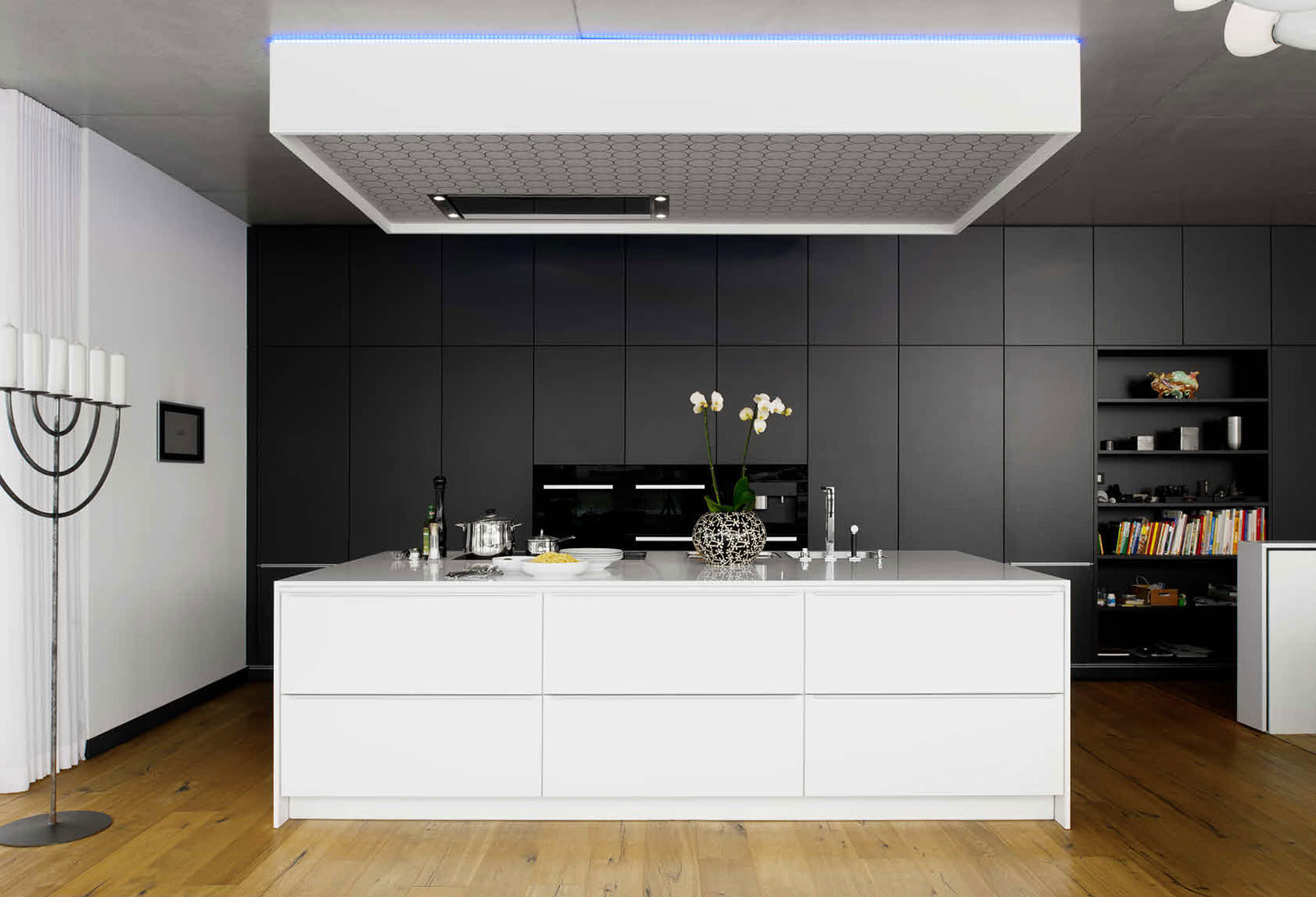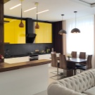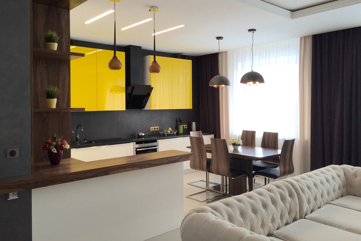 La cuisine-salon a depuis longtemps cessé d'être quelque chose de spécial. Les premiers studios sont apparus dans les années 20 du siècle dernier avec les mains légères de l'architecte Ludwig Mies van der Rohe, qui a proposé d'unir l'espace de vie en supprimant toutes les cloisons internes de la maison. La passion énorme de démolir les murs entre la cuisine et le salon que nous avions dans les années 90. Mais si, au début, une telle solution au problème du logement apportait un réconfort aux individualistes esthétiques et aux jeunes couples sans enfants, aujourd’hui avec le nouveau mode de vie, l’apparition de hottes performantes, un équipement silencieux et fonctionnel, des matériaux pratiques et illimités dans leur palette de couleurs choix de familles ordinaires.