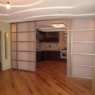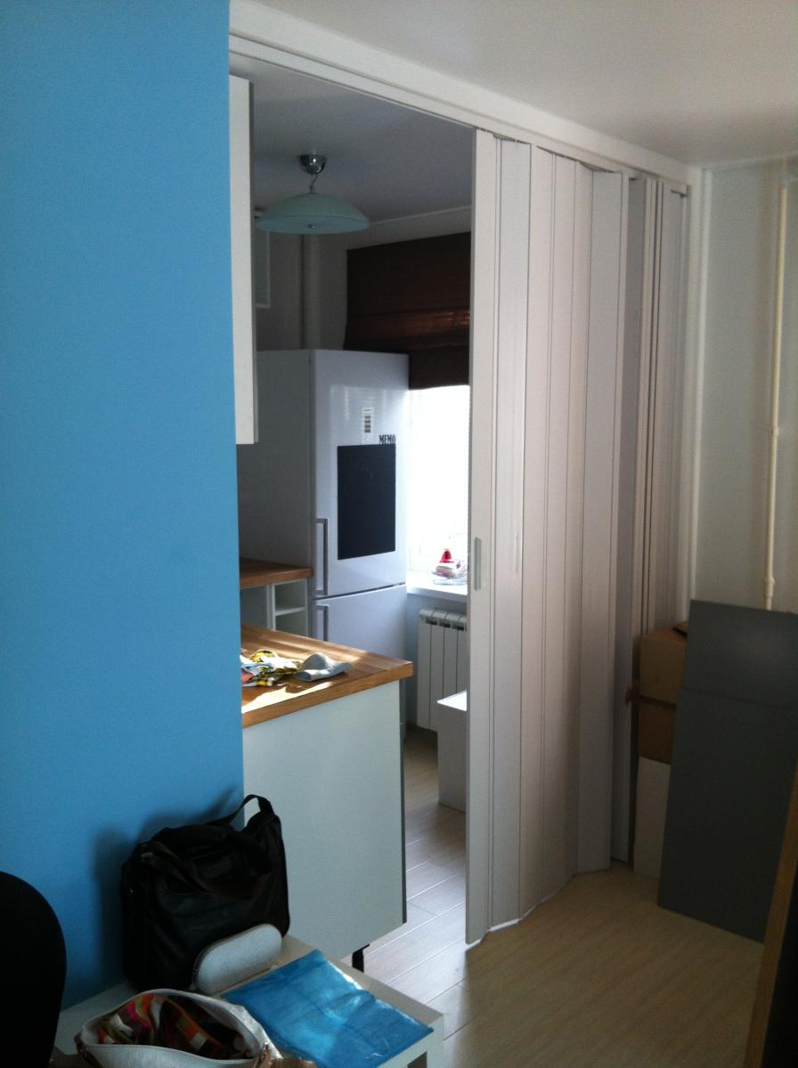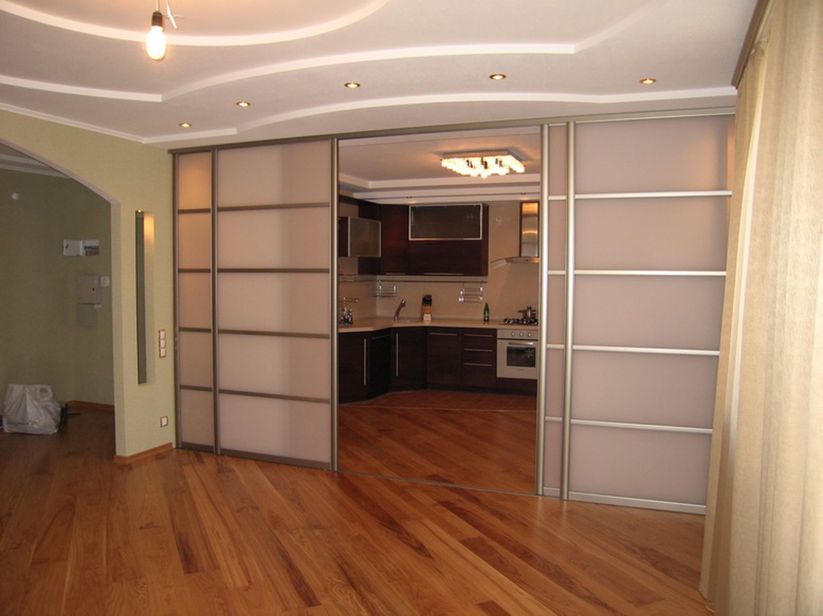 Vous pouvez cacher le gâchis de travail, protéger la zone de restauration et la pollution par un écran coulissant, mais cet endroit ne sauvera pas les amoureux de ceux qui aiment passer du temps devant le four et à cuisiner des amoureux extrêmes: des odeurs se répandront dans la pièce.