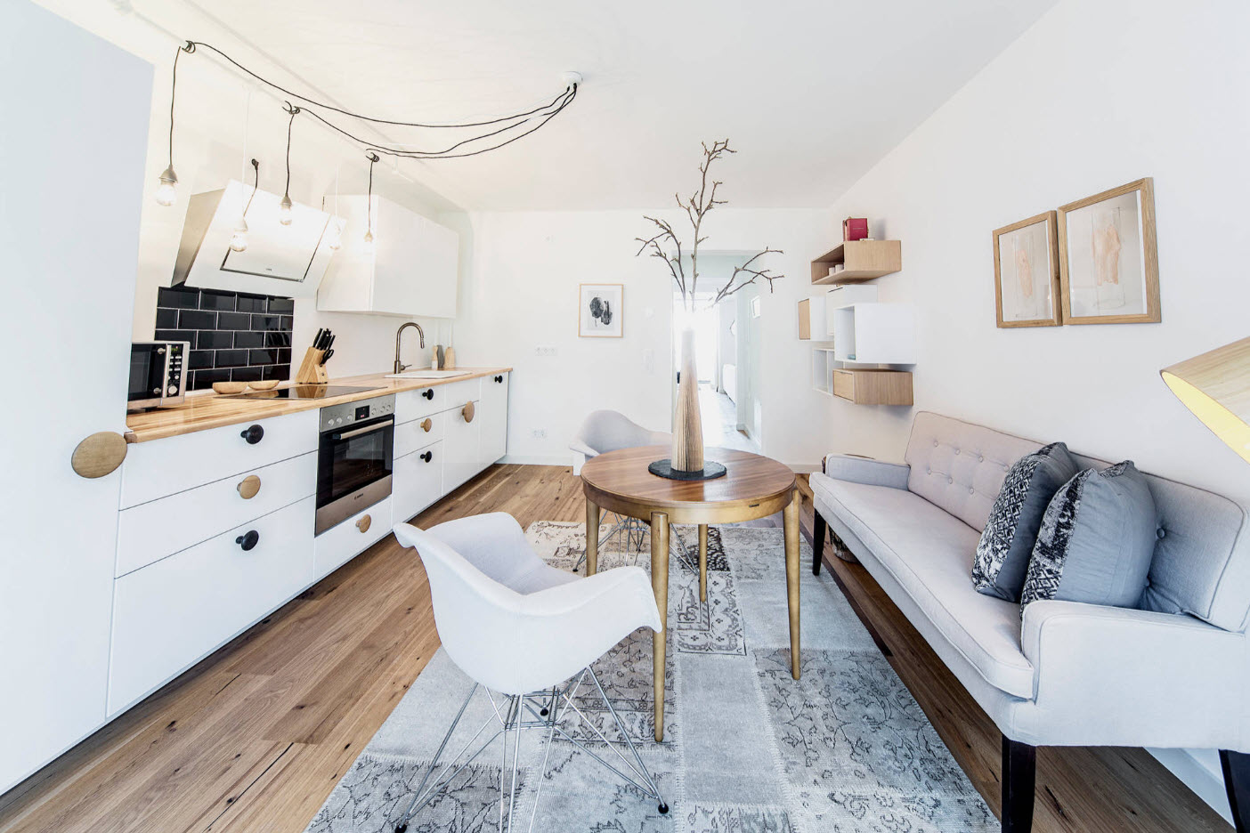 La salle de séjour / cuisine est idéale pour les personnes qui, entre cuisine et repos, choisissent toujours le repos ou plaident en faveur de droits égaux mais limités des deux parties.