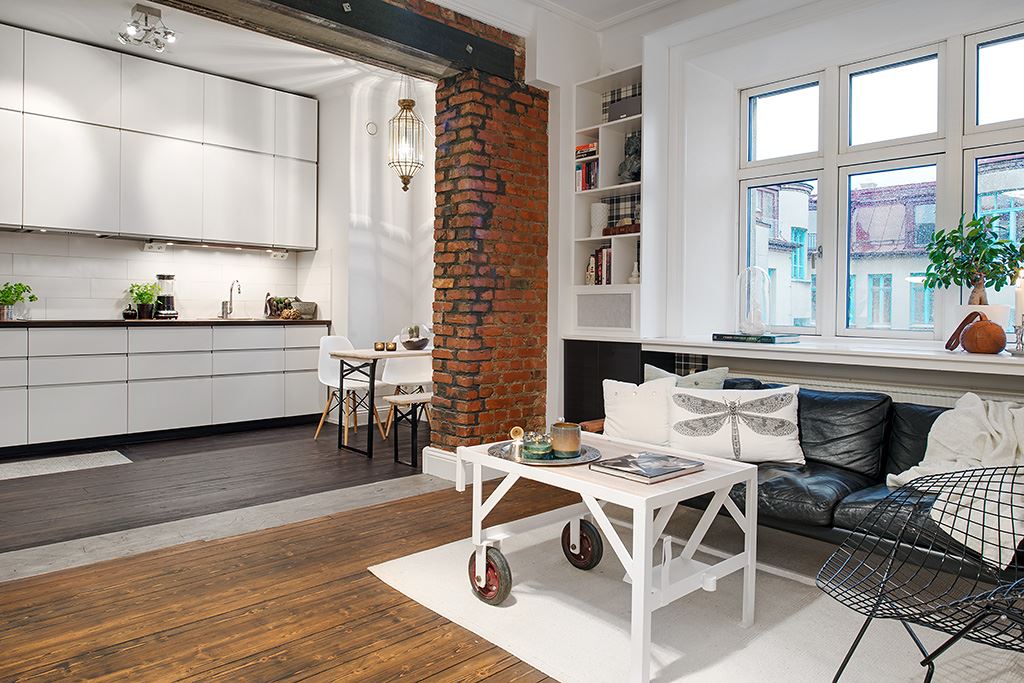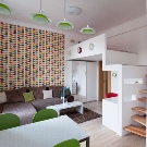 Si vous possédez un petit appartement, ce n'est pas un obstacle à la création du design original. Transformateur de meubles, objets mobiles sur roues, équipement intégré et agencement bien pensé d'étagères pour ranger des objets vous aideront à concrétiser vos fantasmes les plus fous.