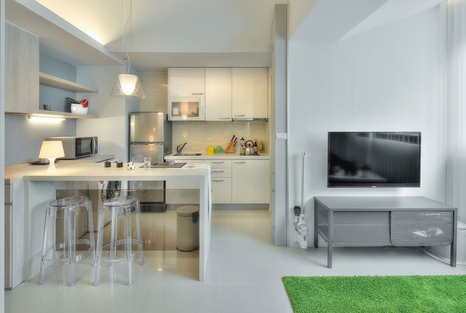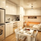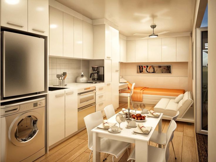 - lors de la planification d'un style d'appartement, privilégiez les appareils encastrables. Cette décision donnera à votre maison un aspect soigné et attrayant. Le matériel de masquage derrière la façade du meuble soulagera l’espace;