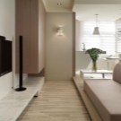 - dans la conception du studio de 17 mètres carrés, une palette de couleurs et un style uniques doivent être conservés. Faites une transition en douceur de la cuisine au salon. Il n'est pas nécessaire d'utiliser une seule couleur à l'intérieur,la tâche principale est la compatibilité des nuances et leur distribution correcte sur toute la zone;