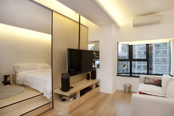 Pour les propriétaires d'un petit appartement, la disposition compacte et pratique pose problème. Même si une personne habite dans une pièce, elle accumule beaucoup de choses qui doivent être stockées quelque part. Par conséquent, pour la fonctionnalité de la maison, vous devrez diviser l'appartement en plusieurs zones: un lit, un coin de travail et un repas.