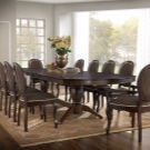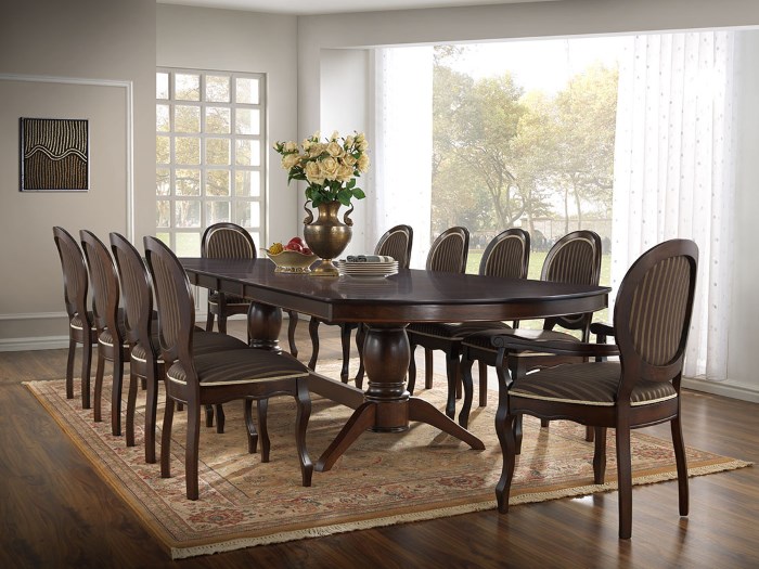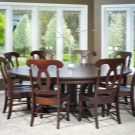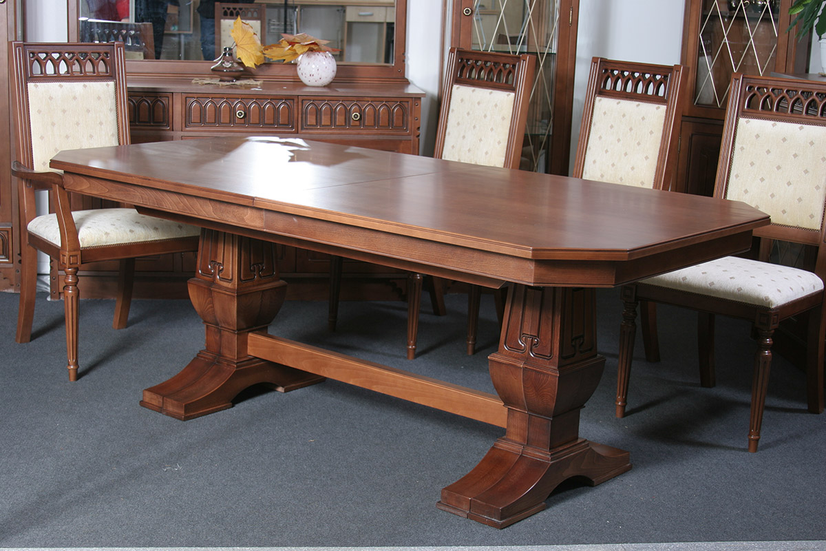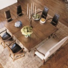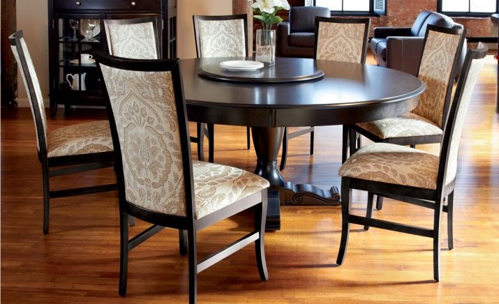 En choisissant ce type de mobilier pour la cuisine, il est également nécessaire de déterminer son emplacement. S'il y a suffisamment de place dans la pièce, il est possible de l'installer au centre. Dans ce cas, il est souhaitable de choisir des modèles de meubles ronds ou ovales.Ces tables conviendront pour un dîner en famille ou un dîner de gala pour 10 personnes ou plus. Les produits en bois ont fière allure lors de la conception d'une cuisine à la campagne. Habituellement, les bords de leurs tables sont décorés de sculptures frisées et les pieds sont en métal.