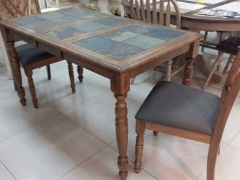 Pour une combinaison harmonieuse de meubles de cuisine avec un intérieur commun, il est recommandé de choisir de grandes tables avec du carrelage. Ils sont pratiques, durables, bien adaptés à tout tablier de cuisine de carreaux de couleur. En outre, tous les modèles de tables avec des carreaux de céramique sont écologiques, rapidement nettoyés.