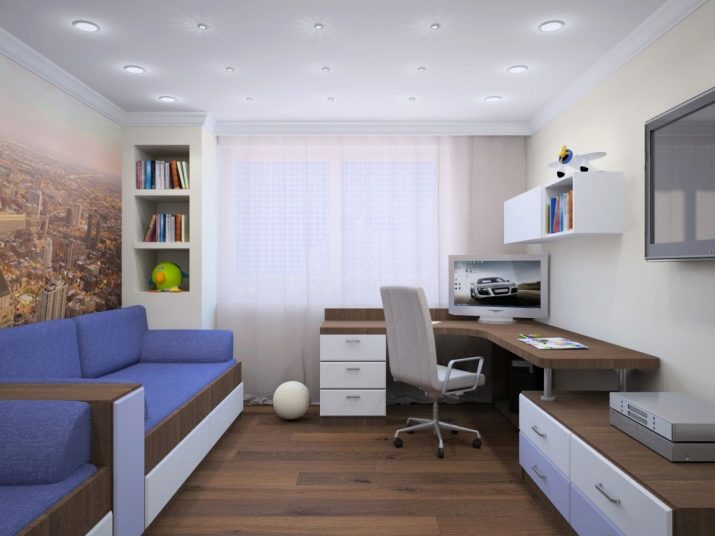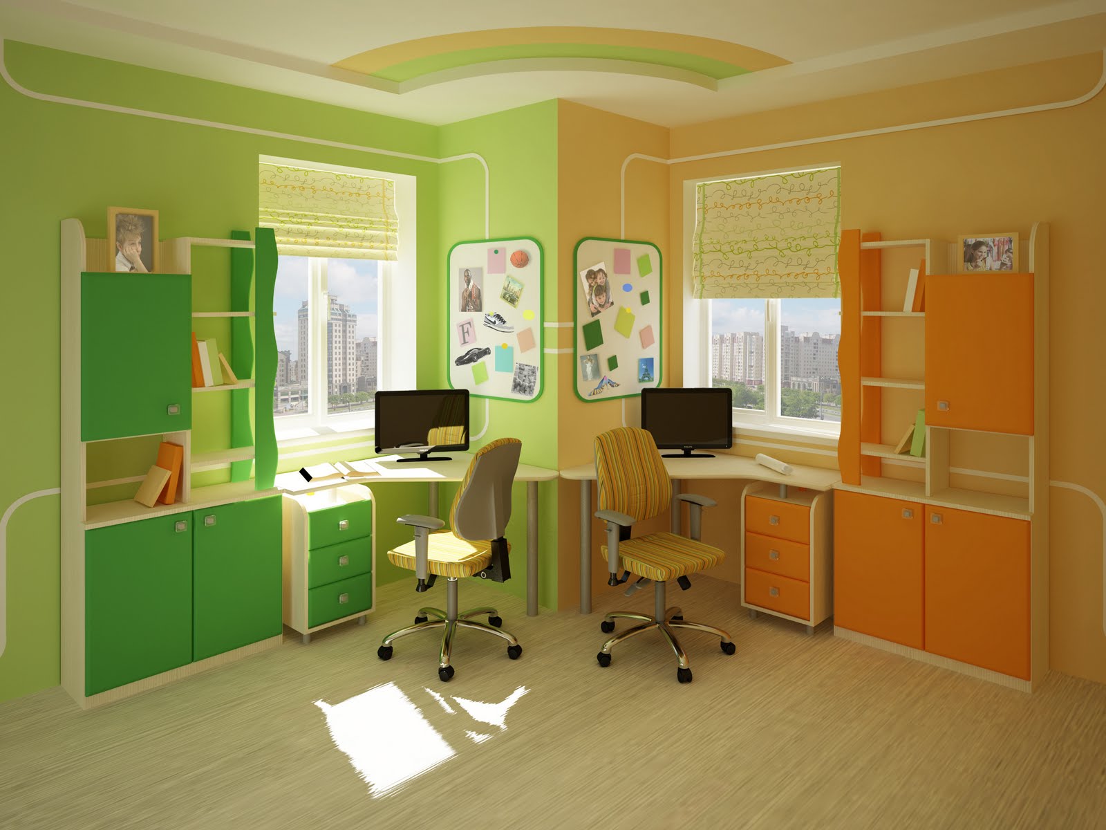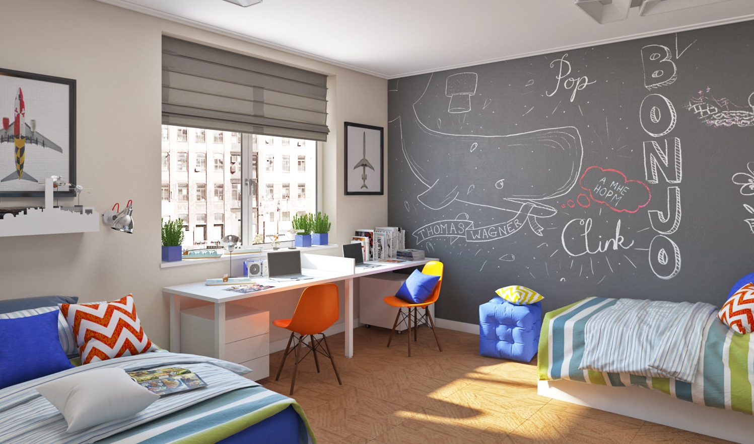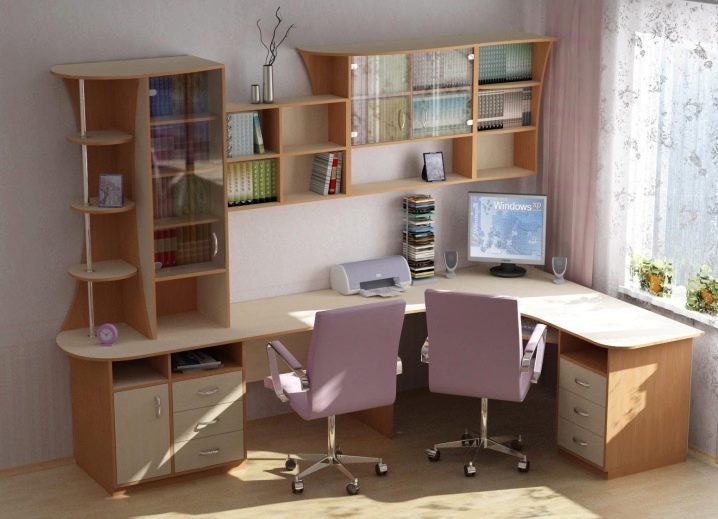 Pour deux enfants, il est préférable d’acheter une table d’une largeur de table de 1,5 à 1,6 m.Cela donnera la possibilité de placer les étudiants les uns en face des autres sur le même lieu de travail. Avec une telle tâche va faire face et une grande table en forme de g, délimitant clairement la zone en deux moitiés. Il est important d’établir correctement les sources de lumière artificielle afin que la lumière ne frappe pas les yeux des enfants.