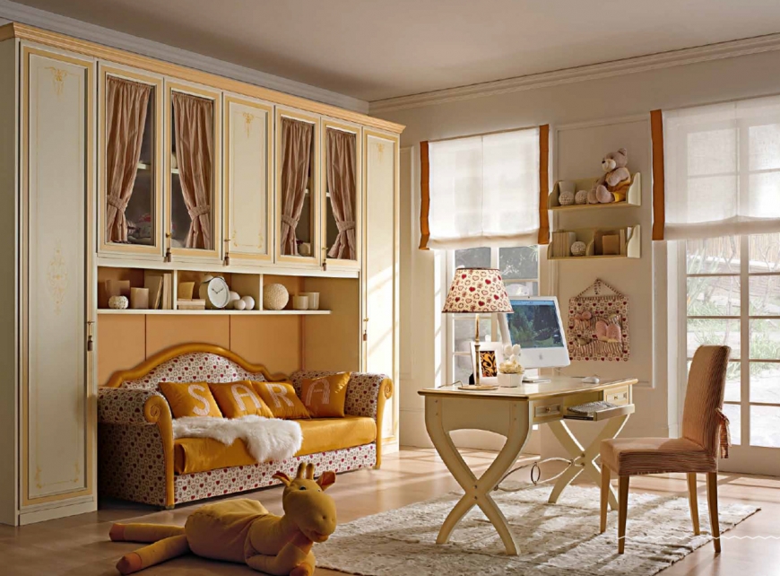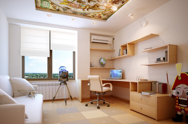 Un facteur important est la capacité du bureau dans les dimensions de la chambre des enfants et sa combinaison harmonieuse avec d'autres éléments intérieurs.La meilleure position de la table est le siège de la fenêtre, de sorte que la lumière tombe à gauche. Le soir, l'enfant aura besoin d'une lampe de bureau ou d'une autre source de lumière artificielle.