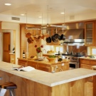 Pour les hottes de type ouvert, des conduits situés au milieu de la cuisine ou adjacents au mur sont fournis. En apparence, c'est un tuyau massif qui sort du plafond. Une grille attachée à la base du tuyau, généralement décorée comme un dôme rectangulaire. Ce type est le type de boîte le plus cher sur le marché. Il faut comprendre que la ventilation ouverte décorative nécessite beaucoup d'espace libre dans la cuisine.