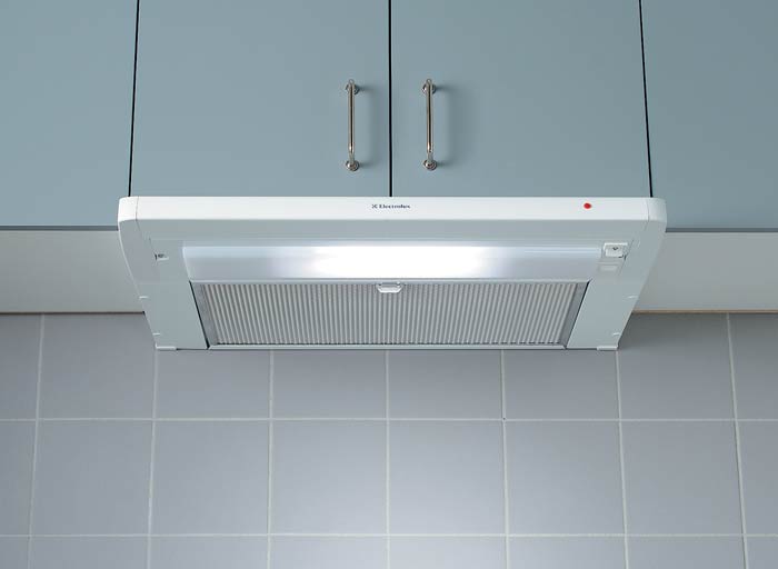 Les hottes plates sont idéales pour une petite cuisine - elles n'impliquent pas l'utilisation d'un grand espace pour accueillir, il suffit assez de montage sous l'armoire de cuisine.