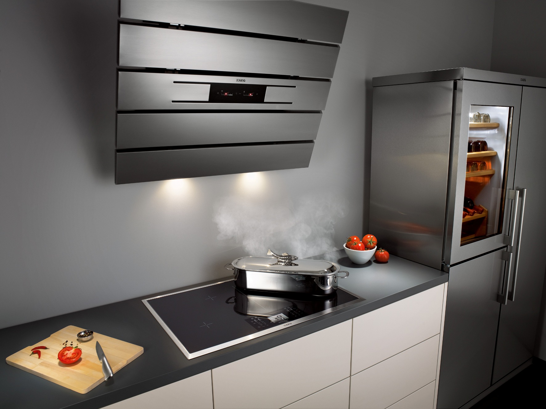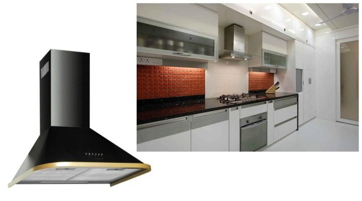 Les fabricants proposent des modèles plus modernes avec des éléments en verre, en bois, en autre métal dans le décor, ainsi que des capots plats de forme incurvée et irrégulière. Grâce à la palette de couleurs classique et à la variation des performances, vous pouvez choisir une option pour n’importe quelle solution de style de la cuisine.
