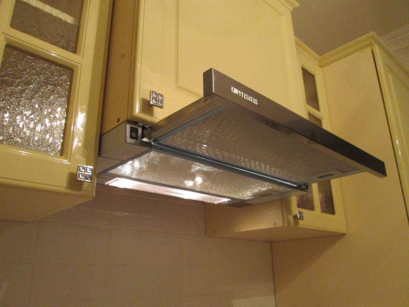 Une autre condition importante lors du choix d'une hotte plate est sa capacité à être monté dans un ensemble de cuisine. Par conséquent, de nombreux fabricants proposent déjà des modèles de cuisine avec une hotte intégrée. En outre, vous pouvez facilement acheter la hotte de la taille souhaitée sous les paramètres de l’armoire de cuisine lors de la fabrication de votre oreillette.