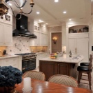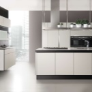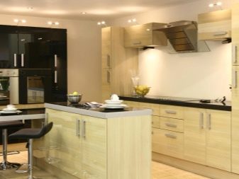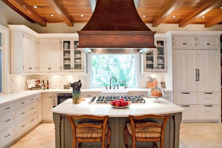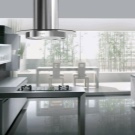 L'île - la plus originale. De tels dispositifs sont fixés au plafond et soulignent le volume de la pièce.Ne s'harmonisant pas avec les formes ou la couleur de la cuisine, ils peuvent gâcher toute la situation, leur apparence doit donc être cohérente avec le style général de la cuisine. Il est préférable de placer les hottes d’île dans les grandes pièces, décorées dans des couleurs vives.