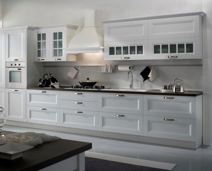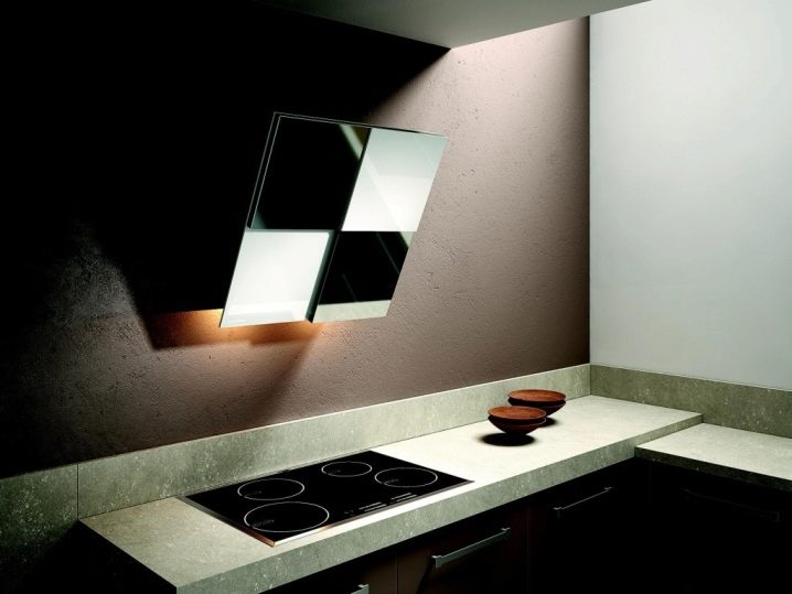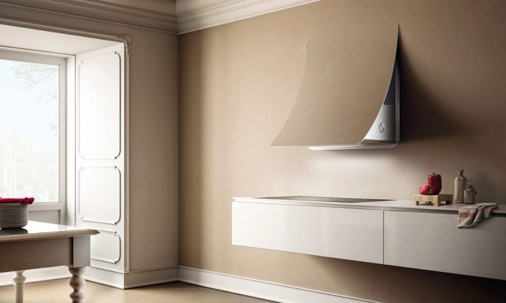 Les hottes fixées au mur ressemblent à un parapluie et jouent un rôle particulier à l'intérieur de la cuisine. Vous devez le prendre en fonction de la couleur de la cuisine ou au contraire jouer sur le contraste avec la couleur des murs.