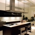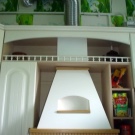 - Si votre cuisine a un plafond sur deux niveaux, vous pouvez installer un conduit d’air entre les niveaux. En présence d'un plafond articulé, il est préférable de placer le design au-dessus. Dans ce cas, le passage d’air ne sera pas visible.