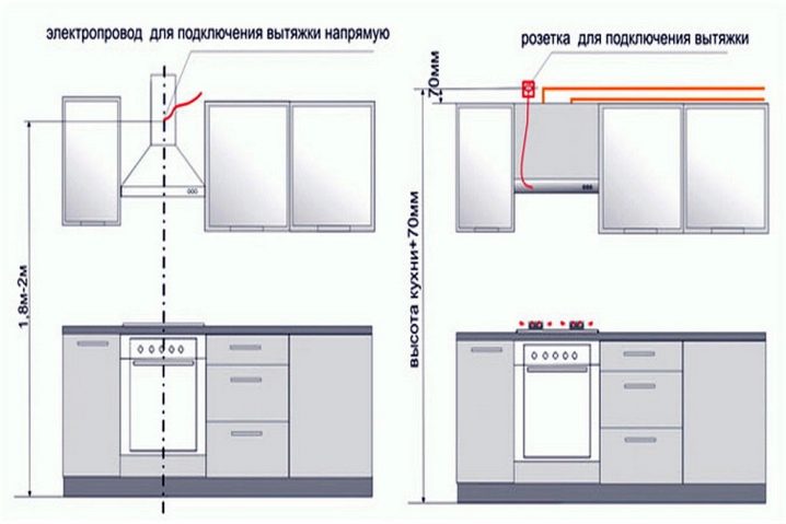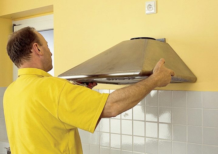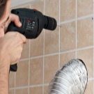 Pour éclairer le moteur électrique et les équipements, connectez les câbles de la hotte au réseau. La fixation d'un système de ventilation à son emplacement constitue l'avant-dernière étape de l'installation du conduit. Vous aurez besoin d'installer le corps du périphérique, la mise en œuvre du balisage pour le montage. Former un trou avec un diamètre de 2/3 de la vis. Après cela, vous pouvez accrocher la structure du corps.