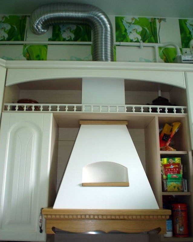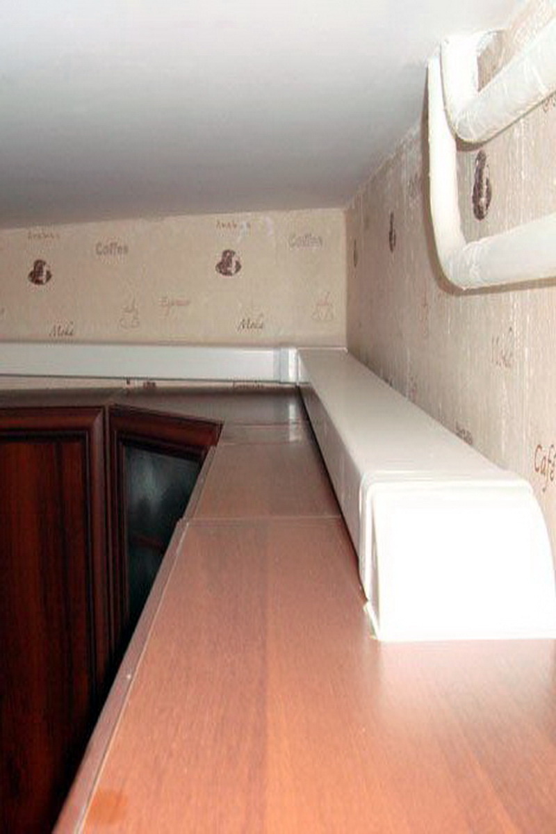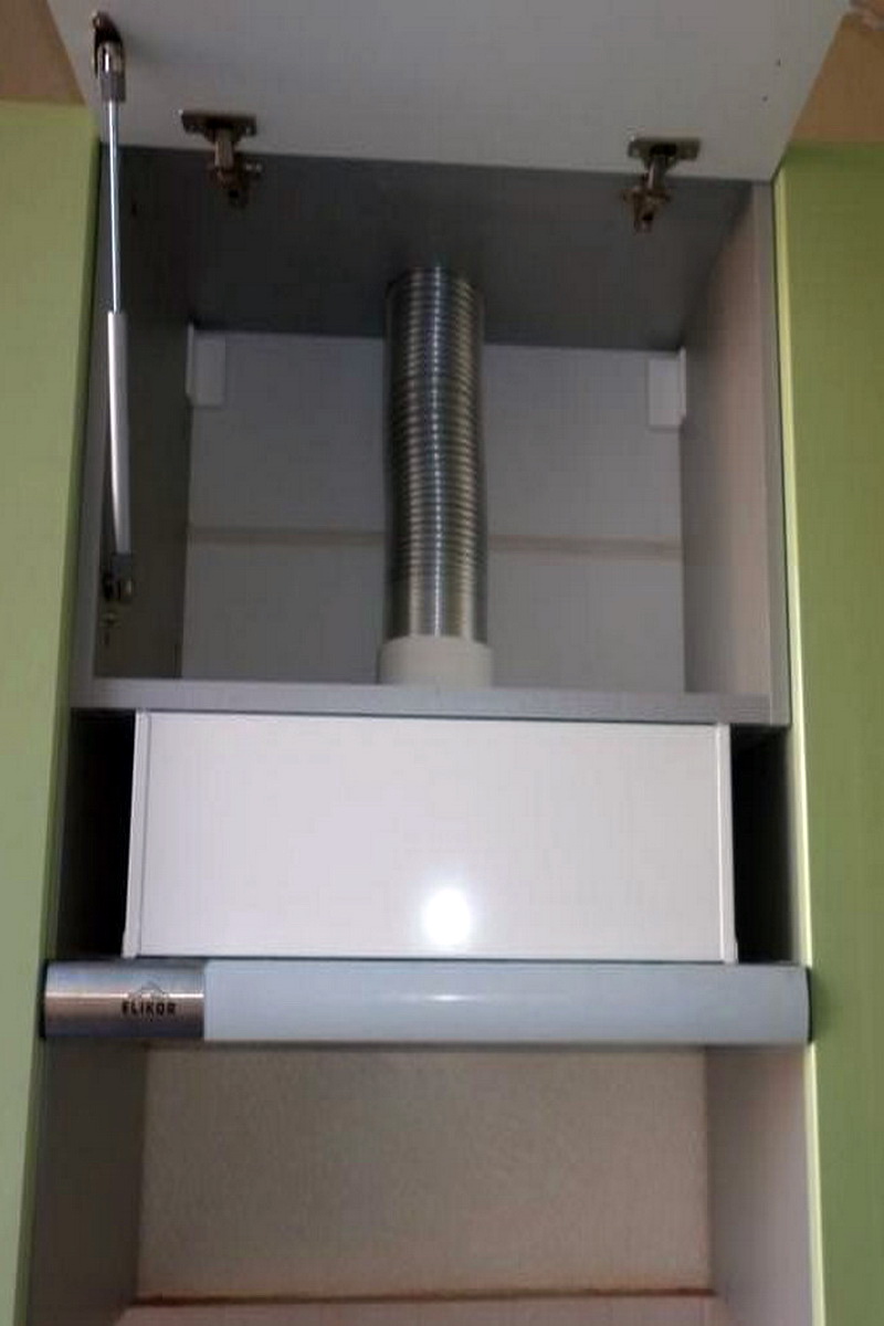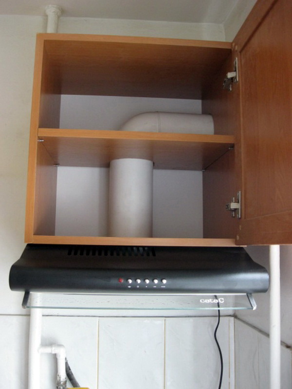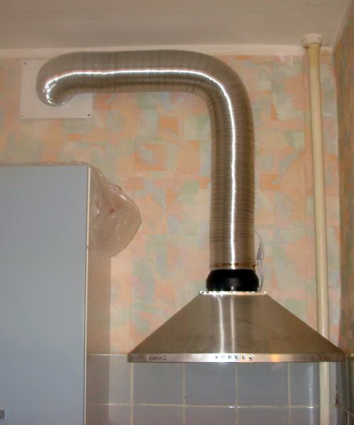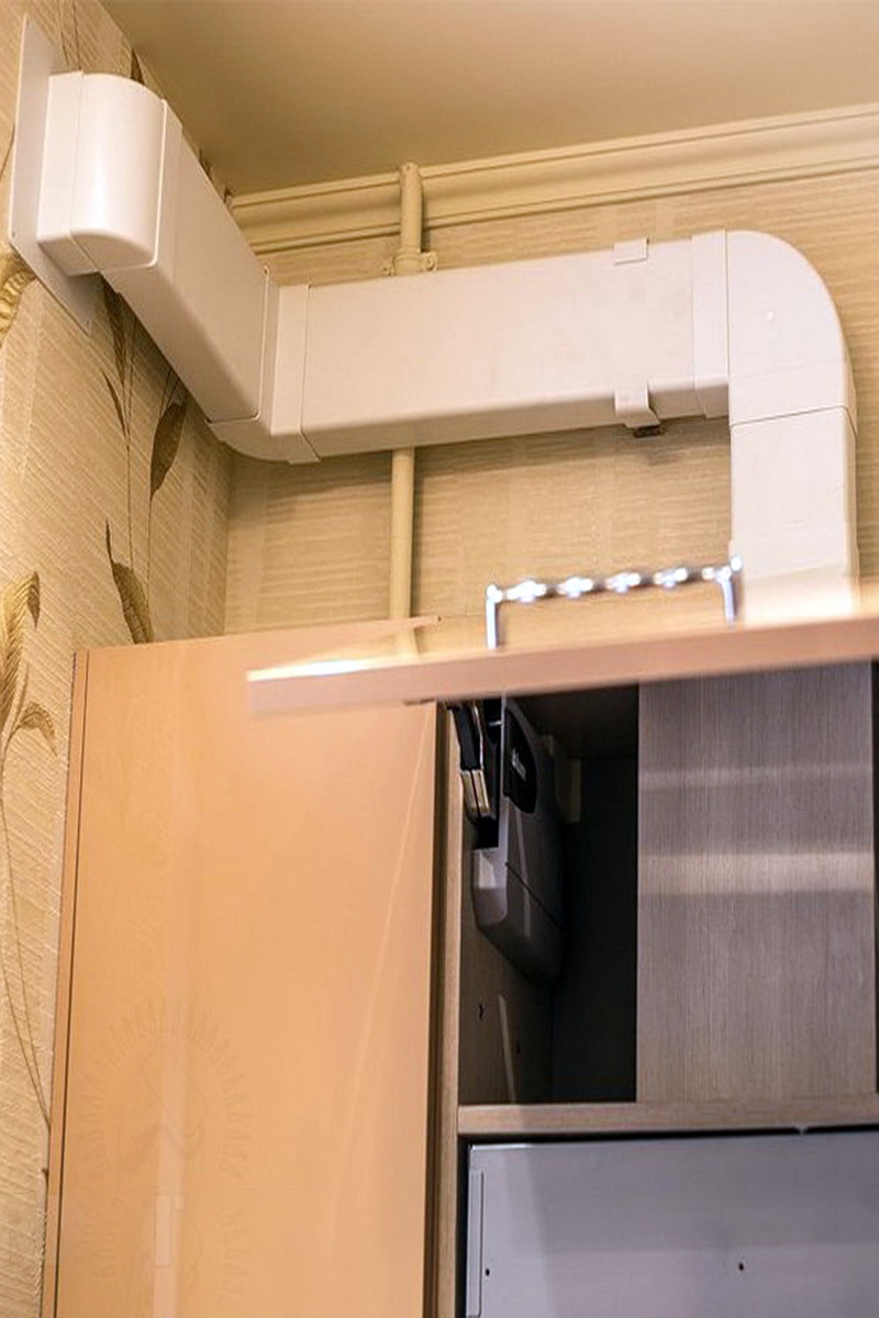 - si vous installez le conduit d’air simultanément à l’achat de mobilier dans la cuisine, vous pouvez installer des tuyaux à l’intérieur des armoires;