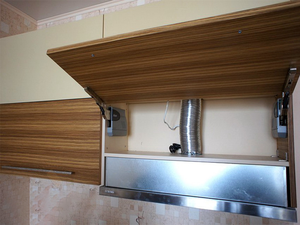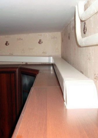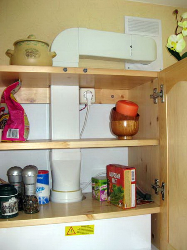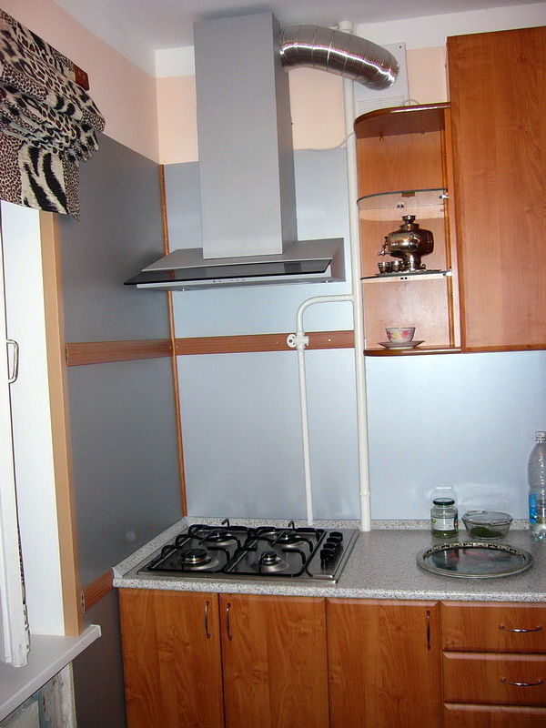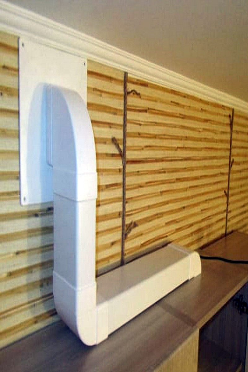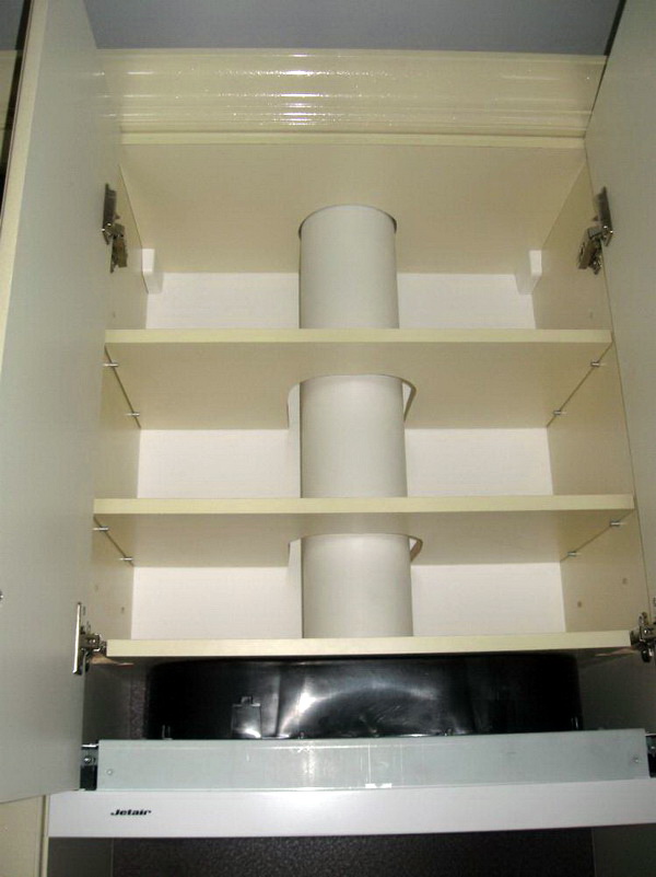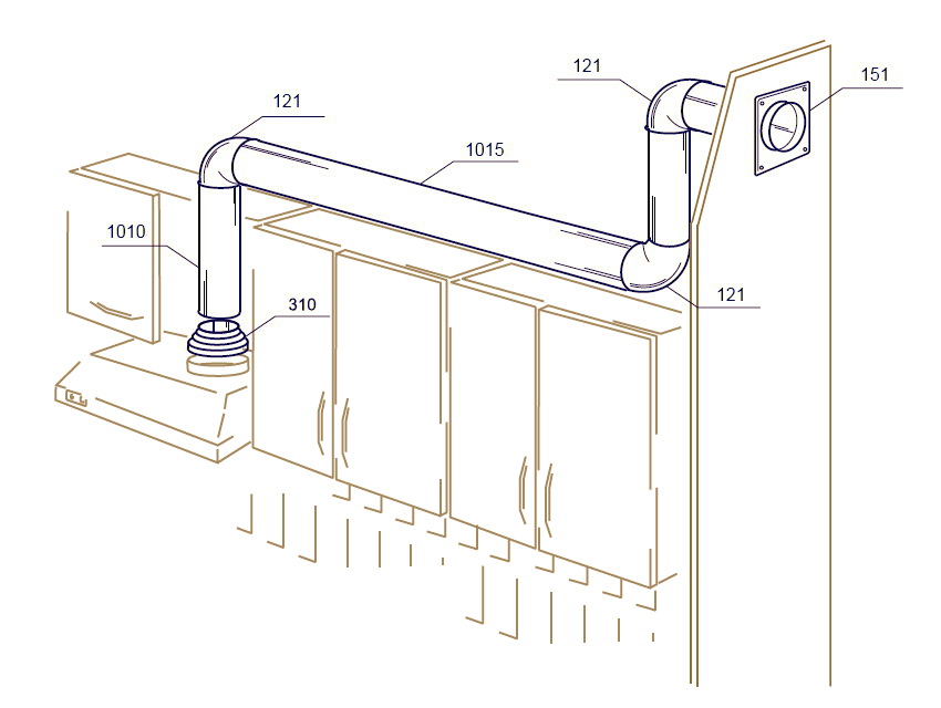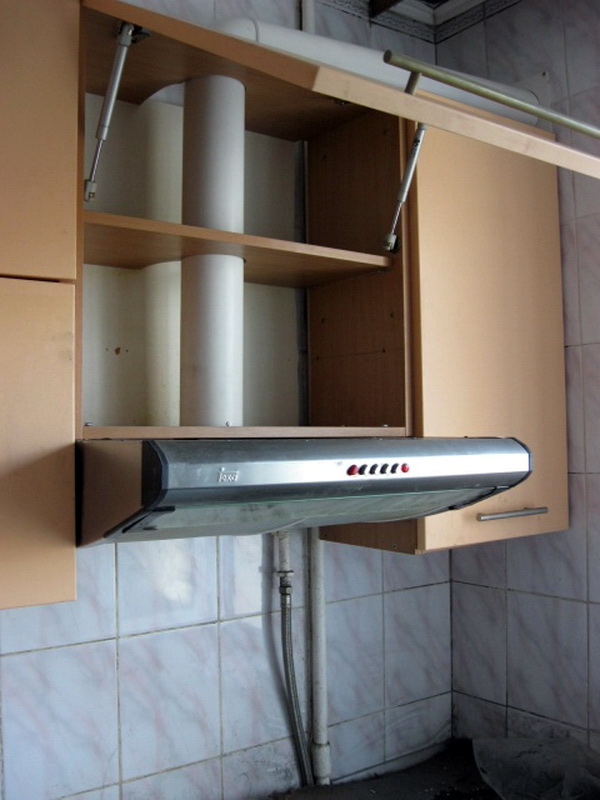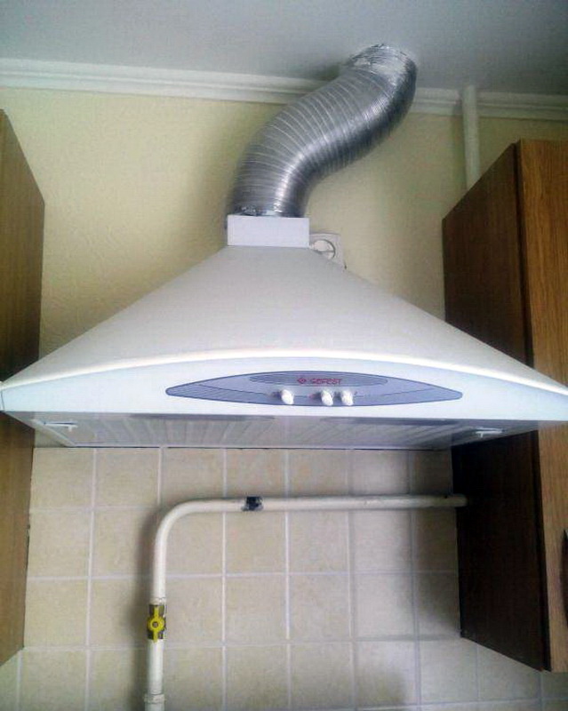 - si vous installez le conduit d’air simultanément à l’achat de mobilier dans la cuisine, vous pouvez installer des tuyaux à l’intérieur des armoires;