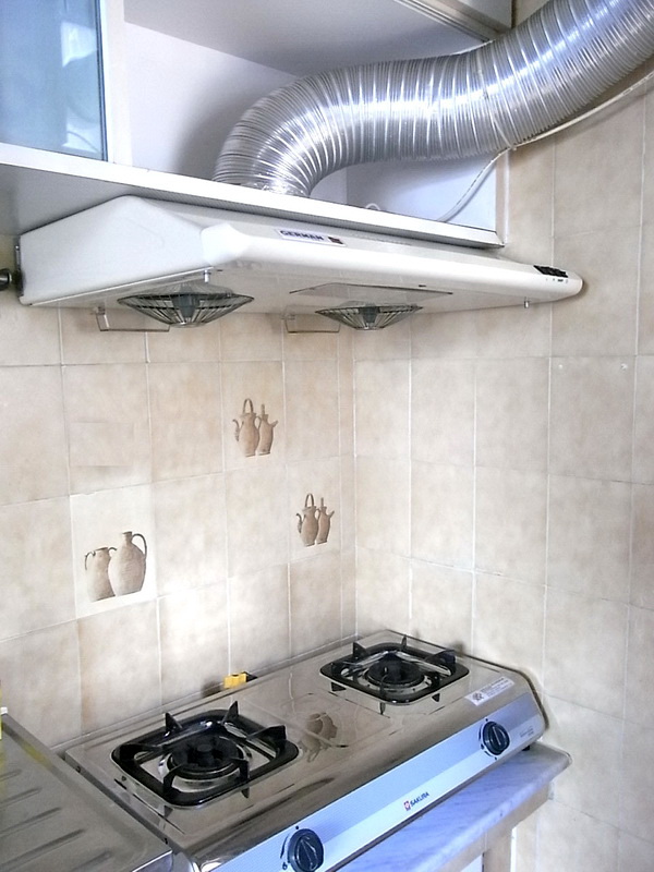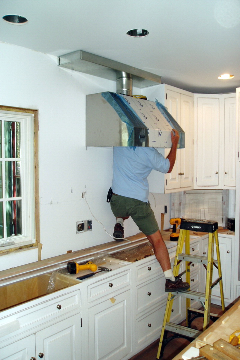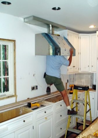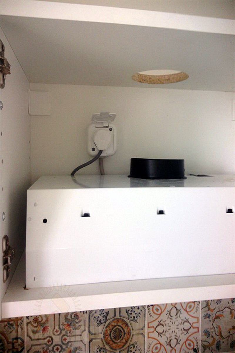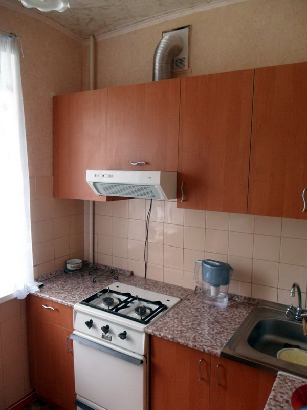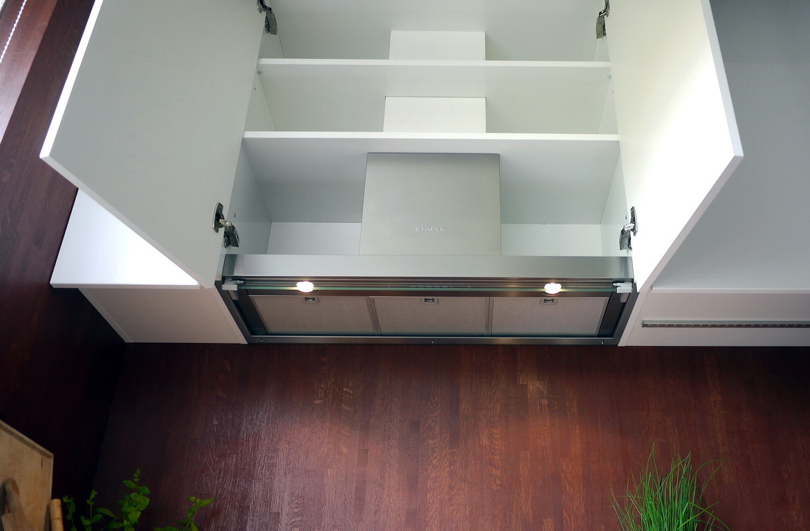 - si vous installez le conduit d’air simultanément à l’achat de mobilier dans la cuisine, vous pouvez installer des tuyaux à l’intérieur des armoires;