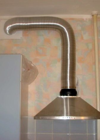 Ces tuyaux sont fabriqués à partir d'aluminium mince.Parmi les inconvénients peuvent être notés l'apparition de la structure. Tous les acheteurs n’aimeront pas qu’il y ait un tuyau en métal dans sa cuisine. À cet égard, l’installation de tuyaux ondulés est combinée à une conception de masquage.