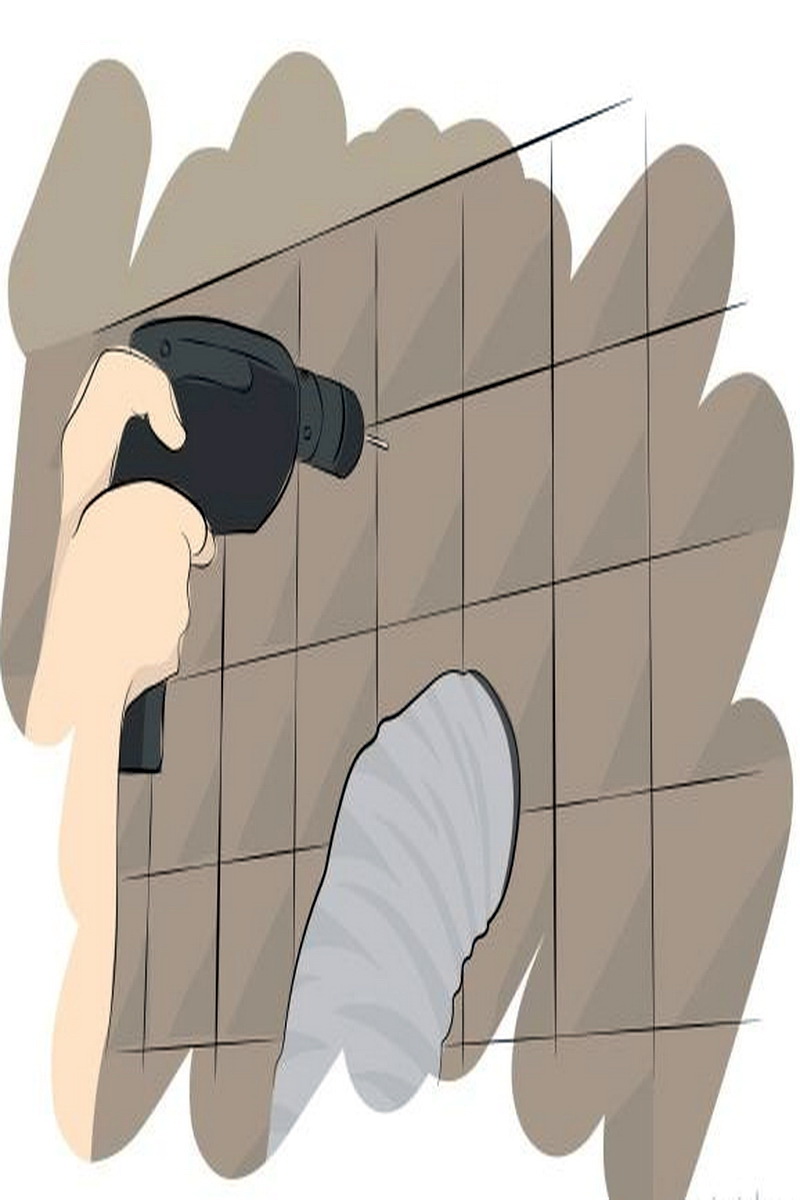 Une perceuse avec une perceuse sur du bois d'un diamètre de 8 mm nécessite que vous percez un trou traversant à l'intérieur du marquage prévu.