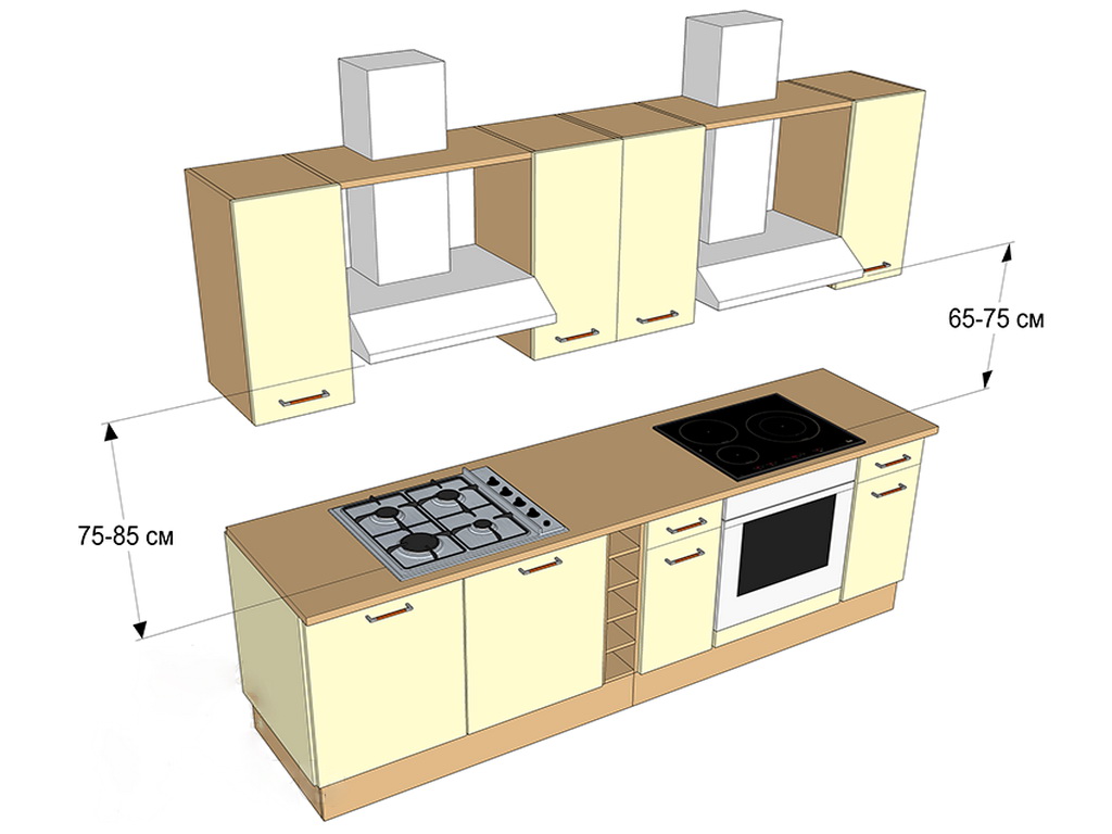 Si vous ne parvenez pas à obtenir le niveau requis à cause de la surface de l'armoire installée au-dessus du poêle, vous devrez le couper un peu. Dans la plupart des cas, vous pourrez déterminer la hauteur de la partie inférieure de la hotte à l'aide du moteur de l'appareil. En règle générale, la taille est 0,5-0,7 mètres.