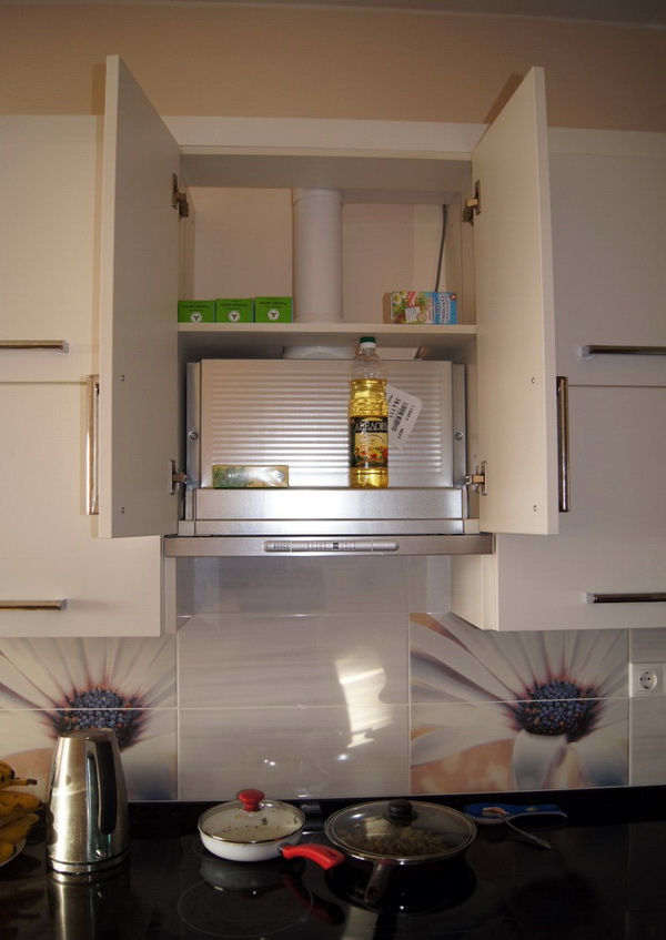 - certains propriétaires sont des boîtes à cloisons sèches fabriquées par eux-mêmes. Basé sur l'intérieur de la cuisine, la structure entière est peinte dans la couleur désirée ou collée avec du papier peint.