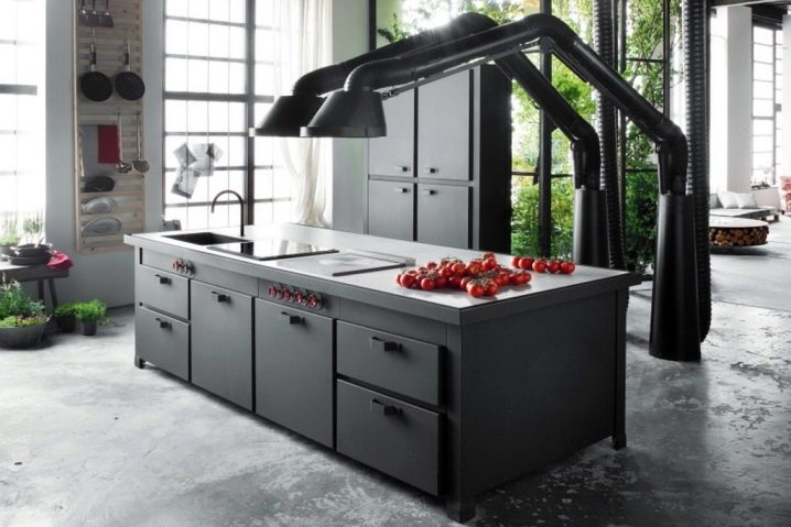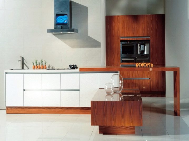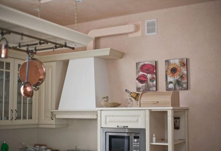 Si vous envisagez de combiner le conduit avec l'intérieur de la cuisine de manière plus harmonieuse, vous devrez masquer la structure de manière compétente. Il y a plusieurs façons de faire ceci: