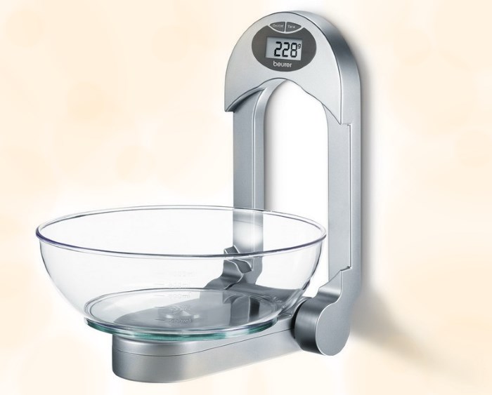 En règle générale, tous les modèles simples d'appareils électroniques de pesage ont une plate-forme en forme de cercle ou de rectangle. Souvent, cet élément structurel est mobile et il est destiné à y placer des produits ou des objets suspendus. Ce type d'instrument de pesage est idéal pour mesurer la masse de fruits ou de légumes, ainsi que d'autres produits non fluides. Mais si vous voulez peser le sucre ou la farine, vous devez les mettre dans n'importe quel récipient.
