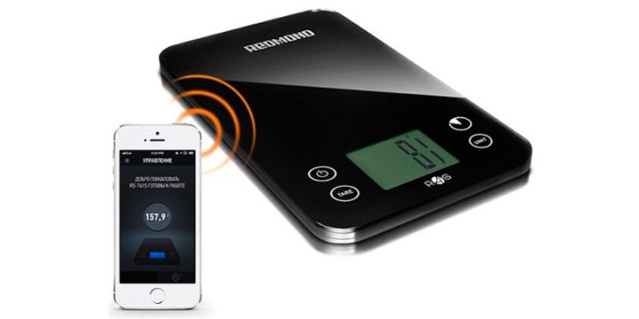 Par exemple, certains fabricants proposent de synchroniser les balances avec Internet via un smartphone utilisant un casque Bluetooth.Pour ce faire, vous devez télécharger une application spéciale sur le téléphone, disponible sur le site Web du fabricant de cet appareil pratique. En allant sur le programme téléchargé sur le smartphone, vous pouvez entrer le nom du produit ou de la parabole. La balance y donnera des informations sur son poids. Ainsi, vous pouvez voir sur l'écran du téléphone la valeur calorique et le rapport des composants utiles dans le plat qui vous intéresse. De plus, sur le site Web du fabricant, les informations sur chaque produit sont régulièrement mises à jour, de sorte qu'il ne contient que les données les plus précises, de sorte qu'il est toujours à jour.