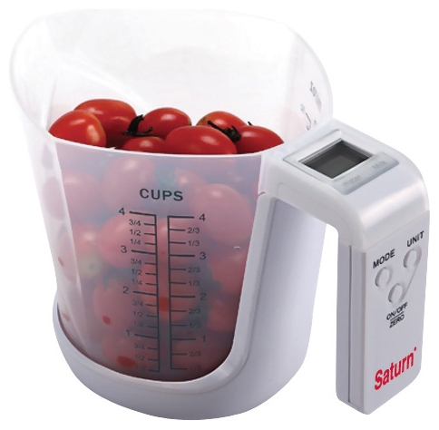 - Tasse à mesurer - Peut-être le modèle le plus pratique de balance de cuisine, avec son volume suffisamment grand, il vous permet de peser avec une grande précision divers types de produits. La principale caractéristique de ce type est qu’avec le poids, vous pouvez immédiatement mesurer le volume du produit car il y a des marques spéciales sur le conteneur. En ce qui concerne la commodité, ces balances sont très bonnes, car elles sont faciles à utiliser et à nettoyer.