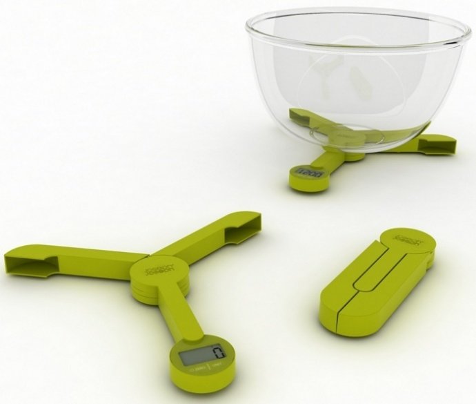 Le modèle des écailles en forme de cuillère est très intéressant et inhabituel. Avec son aide, vous pouvez facilement peser tous les produits liquides et en vrac, qui nécessitent une préparation minimale.