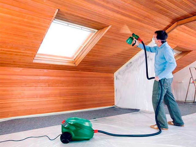 Un spray peut être appliqué dans les grandes pièces.. Avec elle, la composition est appliquée rapidement et uniformément. Dans les petites pièces, il est préférable d'utiliser des rouleaux. - La pulvérisation peut tacher d'autres surfaces et il sera difficile de les nettoyer plus tard. Pour les endroits difficiles à atteindre, il existe des rouleaux de petites tailles.
