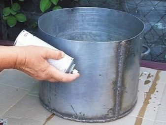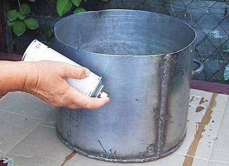 Pour les produits métalliques qui présentent des courbures ou des formes complexes, vous devez choisir une peinture en aérosol. Avant utilisation, il faut secouer la composition contenue dans le récipient et bien mélanger le contenu du pot. Les experts recommandent d'appliquer la laque en 2-3 couches.