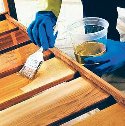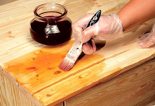 Il s'agit d'une composition spéciale qui empêchera la résine de s'infiltrer dans la surface peinte: il suffit simplement de l'appliquer avec un pinceau sur les nœuds avant la coloration finale.