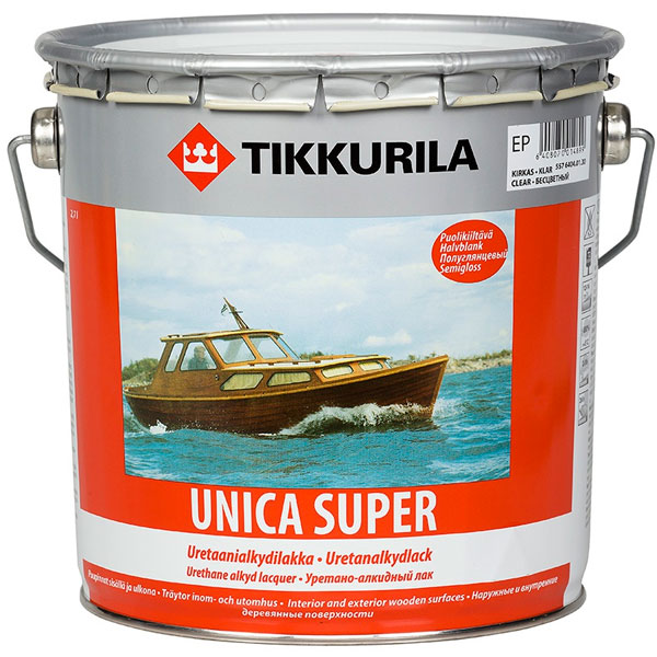 Produit résistant à l'usure, adapté pour une utilisation intérieure et extérieure. On l'appelle aussi yacht ou pont, car il est largement utilisé pour peindre les bateaux.Vernis "Unica Super" recouvrant les cadres de fenêtre, les planchers et les portes, les meubles de jardin et bien plus encore.