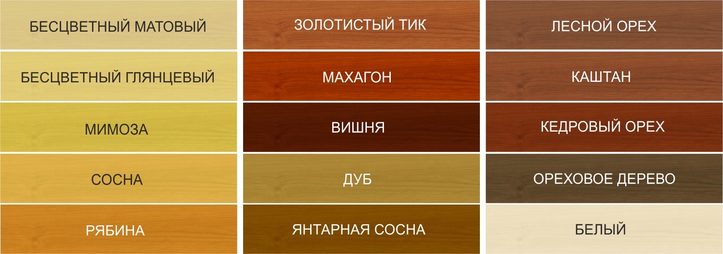 Parfois, les laques qui ont une teinte aident à donner un aspect spécial aux panneaux de bois à l'intérieur. Les compositions colorantes peuvent donner aux conifères habituels des conifères de la couleur "noyer", "châtaigne", "acajou" ou "teck". Tikkurila propose plus de trente compositions teintantes. N'oubliez pas que la couleur de la surface après traitement sera affectée par des facteurs tels que le type de bois, sa densité et sa porosité, le type d'éclairage - naturel ou artificiel.