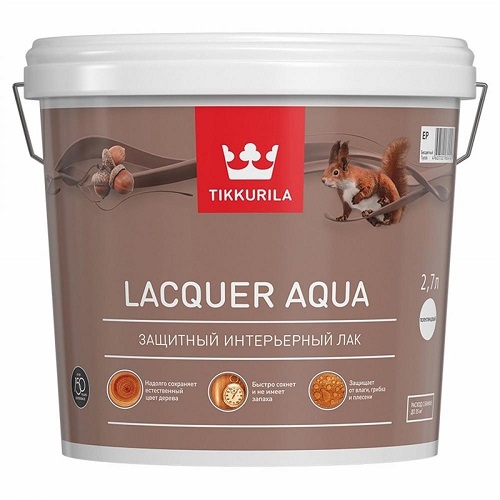 Un point positif important est que tous les produits de la gamme Lacquer Aqua ne dégagent pas une odeur forte. Par conséquent, les laques à l'eau ne peuvent pas être utilisées dans les locaux, mais les vernis à base d'eau ne sont pas utilisés. Laque Aqua protège efficacement les surfaces en bois des températures extrêmes, du noircissement et même de l'humidité.