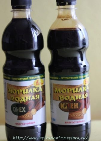 Une autre décision inattendue dans le monde de la réparation est une tache faite par soi-même. Il est généralement utilisé par les amateurs d'expérience. S'il n'y a pas de teinture nécessaire sur le marché, vous pouvez créer vous-même un tel outil à base d'acrylique d'une certaine couleur. Comme un alcool liquide, la teinture à base d’acrylique est facile à utiliser et très facile à mélanger. Il convient également aux travaux internes et externes et ne diffère pas d'une solution simple.