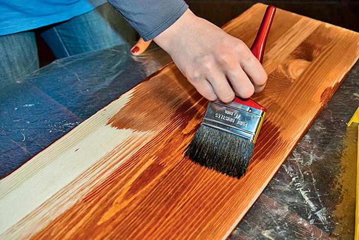 Et n'oubliez pas que les différents types de teinture à bois doivent être appliqués de différentes manières. Par exemple, il est préférable d’appliquer un mélange liquide avec un aérographe, et pour une solution très épaisse, un pinceau convient mieux.