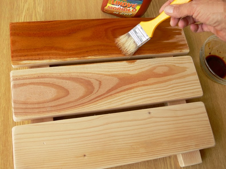 La teinture à bois est un liquide sombre qui est appliqué sur une surface en bois pour obtenir une certaine couleur, pour teinter une texture plus homogène ou pour mettre en valeur la structure de l'objet souhaité. Il est souvent utilisé comme agent de protection du contreplaqué, des panneaux de fibres et des panneaux de particules contre divers facteurs négatifs, tels que la moisissure et la pourriture.