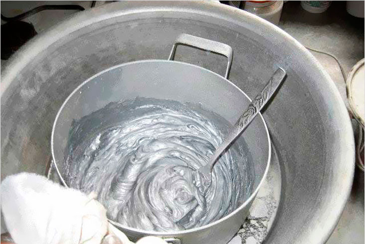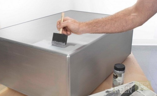 Après les manipulations effectuées, vous pouvez passer directement à la coloration. La surface, ainsi qu'avant d'appliquer toute peinture, doit être préparée et nettoyée. En présence de l'ancien revêtement est nécessaire d'utiliser le sol. Serebryanka appliqué en 2-3 couches. Le matériau ainsi traité devient résistant à la chaleur et aux températures extrêmes.