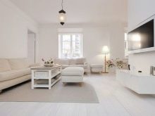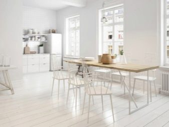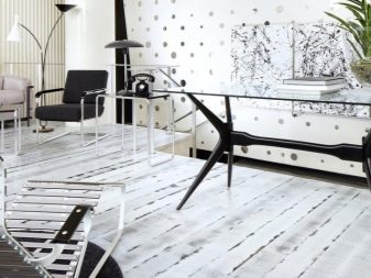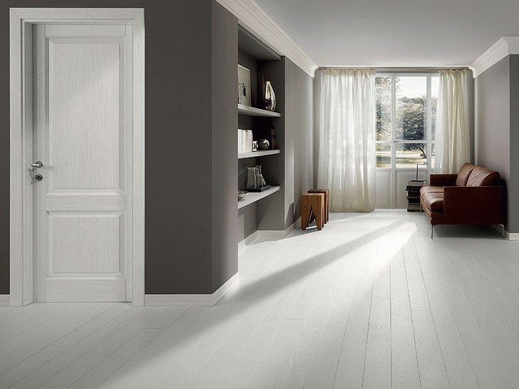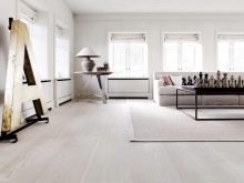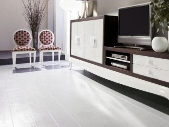 Le sol blanc comme neige sera parfait dans les intérieurs classiques et dans le style hi-tech, dans les styles moderne et minimaliste, art déco et scandinave. Les propriétaires des lieux dans de tels styles de stratifié blanc ne laissent que des critiques élogieuses.