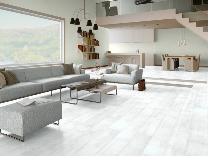 Du stratifié blanc neige dans la chambre contribuera à créer un arrière-plan calme et, dans la cuisine, un sol clair viendra compléter de beaux meubles. En pépinière, cela peut être un ajout de qualité pour les accessoires et les jouets brillants. Le bois blanc stratifié imite souvent différents types de bois. Lorsqu'un tel revêtement est libéré, un motif naturel lui est appliqué. La gamme de couleurs du stratifié blanc est très étendue, ce qui permet de choisir la meilleure option pour la décoration du sol. Par exemple, le stratifié pin blanc ou poire blanche, frêne blanc ou chêne blanc est un choix classique dans le monde des matériaux élégants et de grande qualité.