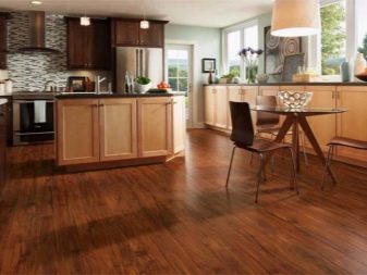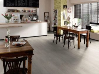 Si le soin des surfaces complexes (particulièrement dans la cuisine-salle à manger) n'est pas pour vous, vous pouvez vous arrêter au stratifié de liège (il y aura des bosses à cause de la surface douce, mais il fait chaud), du marmoleum modulaire (stratifié de marmoleum) ou du plancher en HDF . Un vernis, une cire ou une huile recouvre une couche de placage naturel de ces matériaux, imperméable et facile à entretenir et à restaurer.