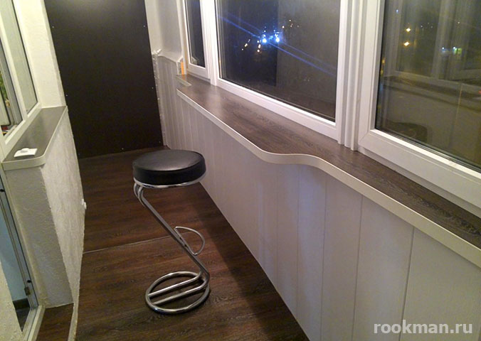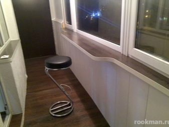 La finition du stratifié de loggia est très pertinente, surtout si le propriétaire passe beaucoup de temps là-bas, y organisant une étude ou un coin personnel pour se détendre.Il n'est pas nécessaire pour cela de recourir à des matériaux naturels coûteux comme le bois massif ou la pierre (le bois nécessitera des mesures supplémentaires en matière de sécurité incendie). Ces matériaux, ainsi que d’autres matériaux naturels, imitent depuis longtemps les stratifiés à la perfection, et leurs propriétés éliminent leurs inconvénients.