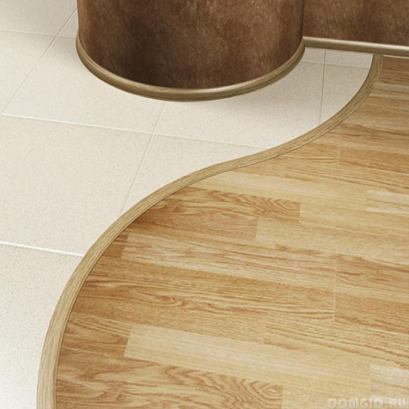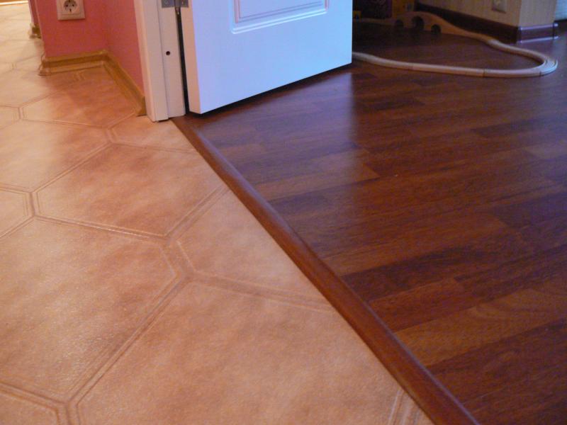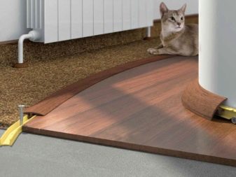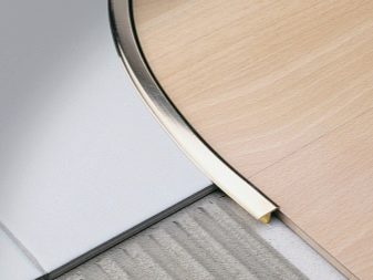 Les joints du stratifié, montés dans différentes pièces, permettent de fermer un type de noix différent - le revêtement de l'avion. Pour une surface de même niveau avec différents matériaux courbes réunis, un seuil curviligne est conçu: en liège ou en plastique. Son installation est très compliquée, il vaut mieux le confier à un spécialiste. Lorsque la couche supérieure décorative de l'écrou est usée, cette couche peut être remplacée et l'écrou restera en place.