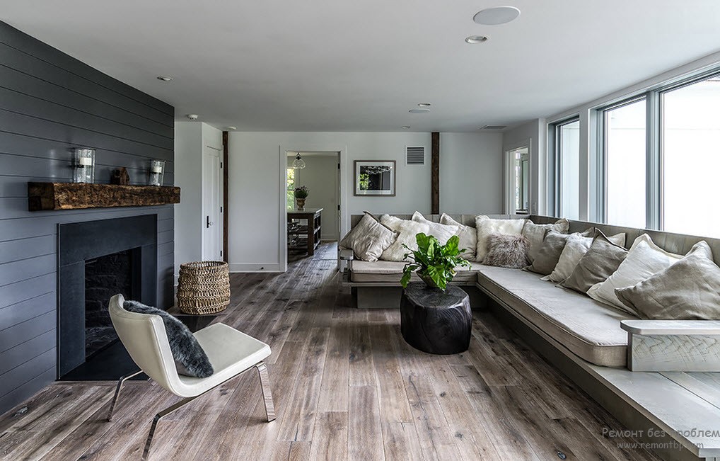 - Le caractère unique du matériau en tant que type de finition pour toutes les surfaces de la pièce, quel que soit leur emplacement - de la maison d’un designer privé à un lieu public.